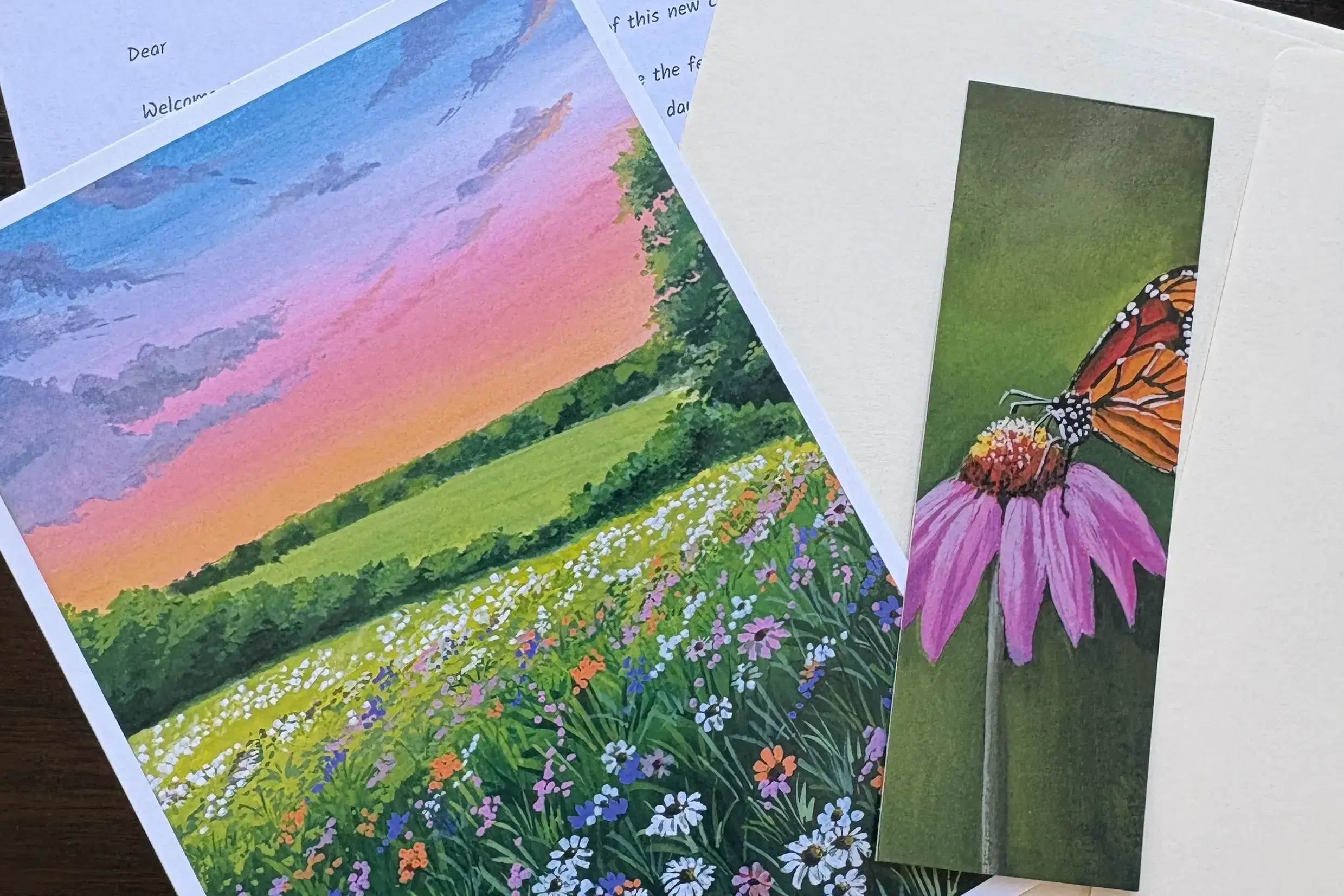 Add a touch of magic to your space with my collection of vibrant illustrated prints and cozy bookmarks.